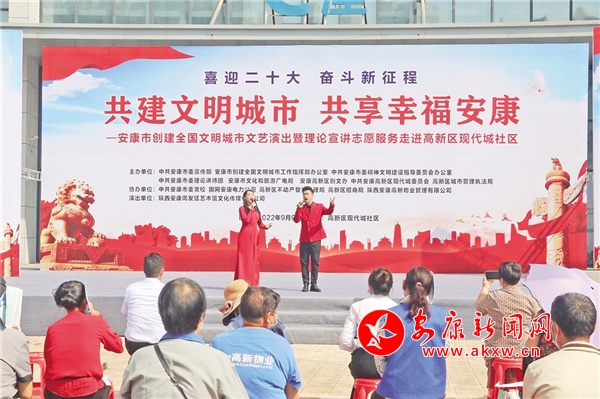9月9日,一場(chǎng)以“共建文明城市,共享幸福安康”為主題的文藝演出和理論宣講活動(dòng)在高新現(xiàn)代城社區(qū)舉行。整場(chǎng)活動(dòng),除了有群眾喜聞樂(lè)見(jiàn)的文藝節(jié)目,還設(shè)置有創(chuàng)建知識(shí)問(wèn)答互動(dòng)和創(chuàng)文知識(shí)專(zhuān)題宣講?,F(xiàn)場(chǎng),志愿者們還熱情地向群眾發(fā)放印有創(chuàng)文內(nèi)容的宣傳冊(cè)、涼扇、垃圾袋等,大家紛紛贊揚(yáng):“形式生動(dòng)活潑,宣傳入腦入心!”