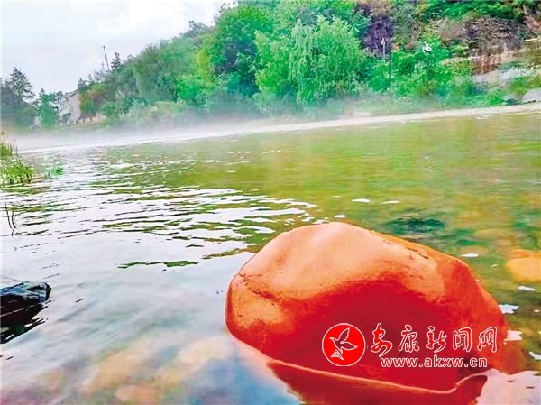 富家河以盛產(chǎn)黃蠟石而聞名,溯溪而上,積水成潭,故有了黃石灘之說。辛丑仲夏,駐村工作的使然,便和黃石灘有了初次接觸。多雨的季節(jié),多霧的節(jié)奏,雨止霧起,氤氳云煙,漲水淹沒了過水橋,半拱在潺潺溪水中只剩下一星點月牙兒,微風(fēng)吹來,蕩起一串串漣漪,擴散到岸邊,紫信吐芳、綠竹搖曳、蝴蝶飛舞、蟬羽嘀鳴,散落在泥土中,黃蠟石顯得特別突?!蚪^色,宛如仙境一般。