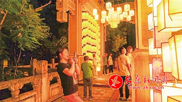 在安瀾樓南側,刻有金州八景的燈籠高高懸掛,穿上漢服,提著燈籠,走向瀾上燈會,感受花燈如晝。移步廊道,徜徉安瀾夜市,感受煥然一新的公園氛圍、琳瑯滿目的文創(chuàng)精品和目不暇接的特色非遺。