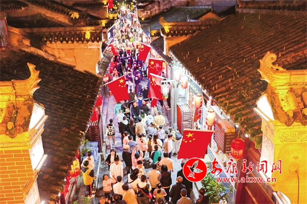 石泉秦巴老街“雙節(jié)”游人如潮,人氣爆棚。楊勇 攝