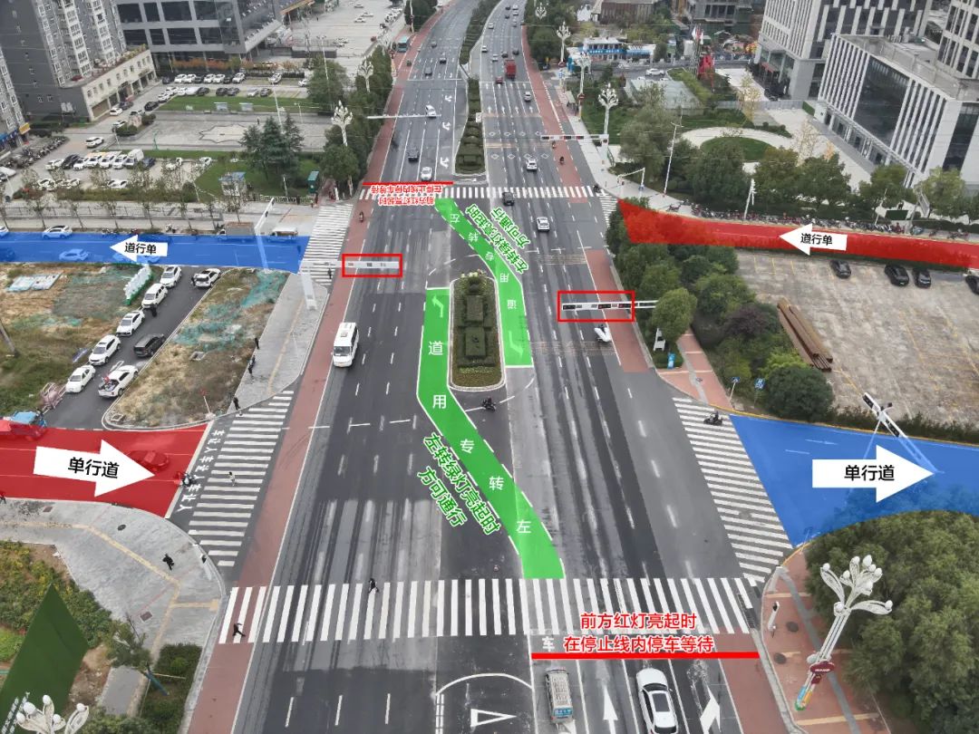二、安康大道東西向左側車道延伸標線(上圖綠色區(qū)域)為左轉(zhuǎn)專用道,并非左轉(zhuǎn)等待區(qū),在左轉(zhuǎn)綠燈亮起時方可通行。