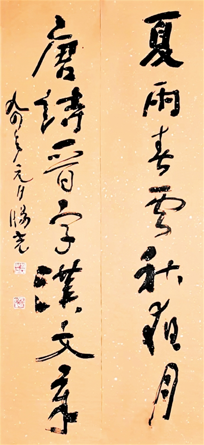 縱觀劉旸光先生的作品,其正楷筆致遒勁、骨肉停勻深諳晉唐書理;所做隸書,結(jié)體開張、筆意瀟灑、饒有“石門”的遺意;其草書氣機(jī)暢達(dá)、空靈疏朗、暗合明人意趣,而篆書則變化多端、垂腳舒展、顧盼自然,大有周秦風(fēng)韻。在騰挪跌宕的線條構(gòu)筑的黑白空間,捕捉轉(zhuǎn)瞬即逝的靈感。他的作品意在筆先,胸有成竹,中側(cè)鋒并用信手揮灑,一氣呵成,筆墨酣暢、淋漓盡致,如入無人之境,觀賞先生作書簡直是超然于物外的享受。