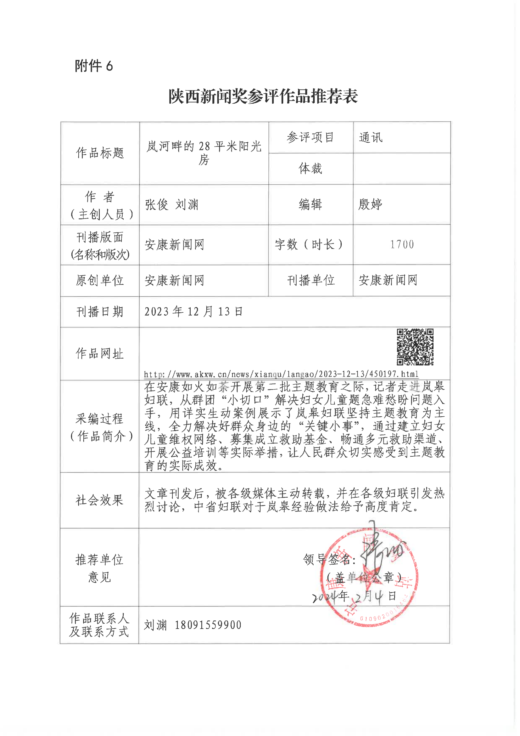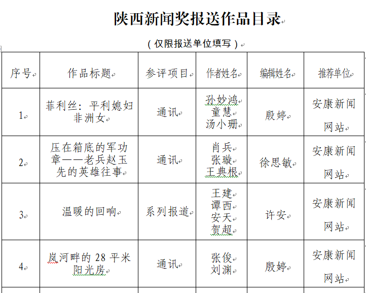 經(jīng)過1月30日編委會推薦、社黨委研究決定,擬推薦以下4件新聞作品參評2023年度“陜西新聞獎”。公示時間從2024年3月6日至2024年3月12日,公示期為5個工作日。如有不同意見,請向安康日報社機關(guān)紀委、新聞管理部反映。
