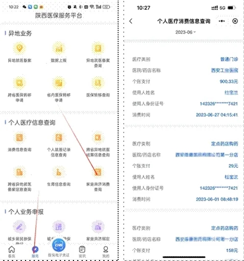 在“陜西醫(yī)保”APP“服務(wù)”界面,選擇家庭共濟消費查詢功能,授權(quán)者可查詢到使用者的家庭共濟消費情況。