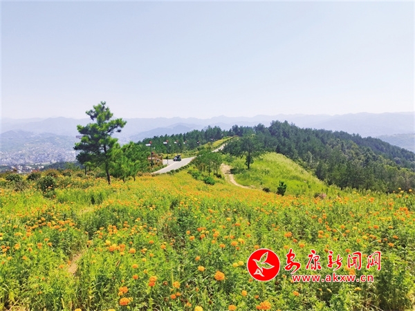 現(xiàn)在的牛蹄嶺已然成了安康城區(qū)市民休閑納涼的好去處,特別是下午夕陽(yáng)西下時(shí),大量人群涌入到牛蹄嶺景區(qū),在興賢塔向東一百米左右,穿過彩虹柏油路便可抵達(dá)一大片萬(wàn)壽菊競(jìng)相綻放的花海,花團(tuán)錦簇的場(chǎng)景引得路人駐足觀賞、打卡留影。徜徉在花海、藍(lán)天、白云、微風(fēng)、蟲鳴組合而成的風(fēng)景里,身心都倍感愉悅。在這里不僅可以看到花海,站在觀景臺(tái)遠(yuǎn)眺,安康城區(qū)的景色也可一覽無(wú)余。待到夕陽(yáng)西下時(shí),與夕陽(yáng)、花海合影留念,頗有“滿城盡帶黃金甲”之感。
