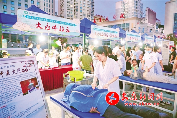 當(dāng)晚,石泉縣中醫(yī)醫(yī)院在春潮廣場(chǎng)設(shè)置中醫(yī)健身操八段錦、中草藥科普、中藥養(yǎng)生茶免費(fèi)飲用及展示、古法中藥香囊制作體驗(yàn)、中醫(yī)護(hù)理適宜技術(shù)體驗(yàn)、中醫(yī)體質(zhì)辨識(shí)與調(diào)養(yǎng)指導(dǎo)、健康咨詢等7個(gè)主題專區(qū),向市民展示中醫(yī)健身操、中草藥等,邀請(qǐng)市民飲用烏梅茶、美容養(yǎng)顏茶,體驗(yàn)中藥香囊制作過(guò)程,向市民講解中草藥知識(shí),為市民免費(fèi)查體,提供健康咨詢和推拿、艾灸、刮痧、拔罐、火療等多種中醫(yī)療法服務(wù),吸引了眾多市民體驗(yàn)。