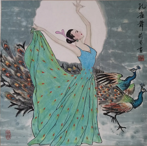 解大姐是陜北人,性格開朗、直率,說話中間或帶出一些濃重的陜北口音。雖說她主業(yè)從于政界,但她微笑的背后卻潛藏著不可掩飾的藝術(shù)天賦,揮發(fā)著令人奪目的藝術(shù)才情。繁雜的政務(wù)工作之余,她創(chuàng)作不輟,堅(jiān)持不懈,居然在多個(gè)藝術(shù)門類收獲頗豐,好評(píng)連連。寫小說,她寫出幾十萬字的長(zhǎng)篇出版發(fā)行;寫劇本,竟拍成了電影予以公映;學(xué)國(guó)畫,亦讓藝術(shù)界的大咖贊口不絕。我雖不才,空有浮名,但深耕藝界多年,對(duì)于其中的好賴還能分出一二。我感到,一個(gè)人的人品和藝品基本一致,解大姐的藝術(shù),是扎根于她熟悉的陜北大地的藝術(shù),是生長(zhǎng)在山峁峁上經(jīng)歷風(fēng)霜雨雪的藝術(shù),就像那陜北倔強(qiáng)的疙瘩柳,散發(fā)著對(duì)土地對(duì)生活的親近和熱情,對(duì)人生價(jià)值實(shí)現(xiàn)的不屈和追求??吹剿膰?guó)畫新作,有陜北剪紙等民間藝術(shù)的滋養(yǎng)和影響,真切而樸實(shí)。她的飛天人物系列,泥古而不落窠臼,使我想到疙瘩柳條隨風(fēng)擺動(dòng)的婀娜風(fēng)姿,溫溫潤(rùn)潤(rùn),令人遐思和向往;她的花鳥畫作,使我想到陜北山野一片蒼茫之間,一朵兩朵盛開的山丹丹花,嬌艷得令人不忍觸手;她的山水畫作,又猶如陜北山原上嫩黃的棗花,洋溢著撲面而來的質(zhì)樸、清新和率真之氣。