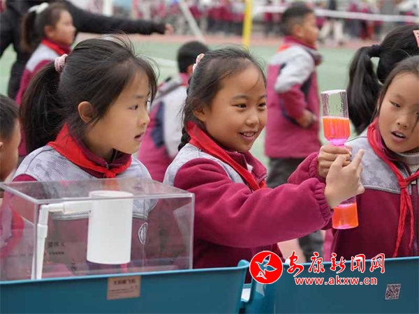 在各個(gè)科學(xué)實(shí)驗(yàn)項(xiàng)目前,同學(xué)們駐足停留,認(rèn)真觀察、反復(fù)操作,沉浸在知識的海洋與科技的奧秘中,操場上不時(shí)傳來陣陣驚嘆聲?!拔易罡信d趣的是機(jī)器人,通過手柄遙控能讓機(jī)器人模仿奔跑跳躍,跟我們打招呼,真是太神奇了,我以后要更加努力地學(xué)習(xí)科學(xué)知識,探索更多的未知領(lǐng)域?!蔽迥昙壱粚W(xué)生激動地說。