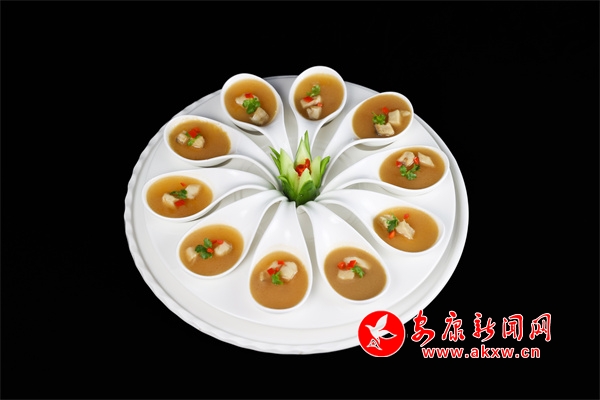 “紫陽洄水魚宴”由8個(gè)涼菜,即:香酥小魚、干煸牛肉、茶香魚皮、鱘魚凍、撈汁七彩花生、酸辣四拼、雙色變蛋、涼拌折耳根;8個(gè)熱菜即:茶香鱘魚、紫蘇魚片、熗鍋鯉魚、釀羊肚菌、辣子雞、臘味三拼、魚頭燉黑豆腐、當(dāng)歸白蘿卜燉羊肉;一個(gè)湯菜:魚丸湯;3道小吃即:魚肉餃子、茶香餅、紫菜魚餅;主食:金銀米飯、酸菜面和飯后水果拼盤組成。據(jù)了解該宴席是繼漢濱區(qū)流水魚宴、石泉縣江魚魚宴之后,全市公開推向市場的第三個(gè)以魚為主料的專業(yè)魚宴。?