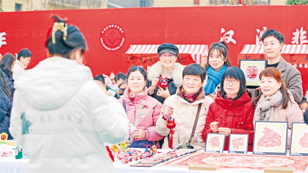剪紙愛好者在馮增慧的剪紙攤位前打卡拍照 羅妍 攝