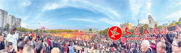安康民俗講究正月十二“出燈”。傍晚時(shí)分,水西門(mén)外人頭攢動(dòng)。群眾從四面八方陸續(xù)向廣場(chǎng)周?chē)鷧R集,共同觀看社火表演盛況。