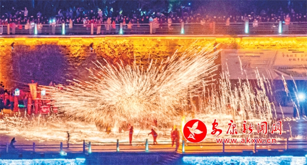 打鐵花點(diǎn)亮漢水之濱。林江 攝