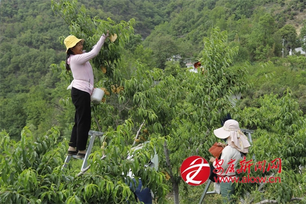 嵐皋:黃桃入夏初成果 果農(nóng)疏果套袋忙
