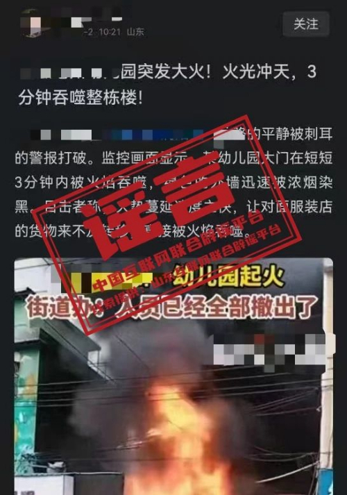 通報(bào):一幼兒園發(fā)生大火,32名孩子被困?實(shí)為使用“AI工具”編造的謠言