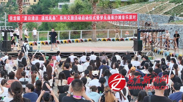 佐龍鎮(zhèn)黨委、政府因勢(shì)利導(dǎo),開發(fā)了蓬萊仙境景區(qū)及馬宗村民宿集群,又把河灣變成了露天公共文化場(chǎng)所。他們舉辦的沙灘音樂節(jié),邀請(qǐng)本地的音樂舞蹈愛好者駐場(chǎng),鼓勵(lì)當(dāng)?shù)厝罕姟⑼鈦碛慰蛥⑴c,以參與活動(dòng)、宣傳活動(dòng)的數(shù)量打卡積分,兌換文創(chuàng)產(chǎn)品和文化禮品。