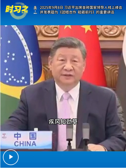 2025年9月8日晚,國家主席習(xí)近平出席金磚國家領(lǐng)導(dǎo)人線上峰會,并發(fā)表題為《團(tuán)結(jié)合作 砥礪前行》的重要講話。