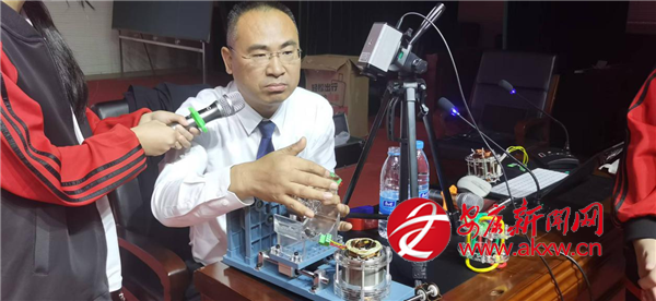 講座的亮點(diǎn)之一是關(guān)于“三相交流鼠籠式異步電動(dòng)機(jī)”的現(xiàn)場(chǎng)實(shí)驗(yàn)展示。嵇教授首先通俗易懂地闡釋了該類型電動(dòng)機(jī)作為現(xiàn)代工業(yè)核心的重要地位及基本原理,隨后現(xiàn)場(chǎng)演示實(shí)驗(yàn)過程,逐步解析其內(nèi)部結(jié)構(gòu)、旋轉(zhuǎn)磁場(chǎng)的形成機(jī)制,以及“鼠籠”轉(zhuǎn)子實(shí)現(xiàn)電能與機(jī)械能高效轉(zhuǎn)換的原理。抽象難懂的電磁學(xué)知識(shí),在直觀的演示與生動(dòng)的講解中變得清晰可感。嵇教授還引導(dǎo)同學(xué)們思考該項(xiàng)技術(shù)在各行各業(yè)的廣泛應(yīng)用,切身感受科技對(duì)社會(huì)發(fā)展的深遠(yuǎn)影響。這一環(huán)節(jié)有效激發(fā)了同學(xué)們對(duì)工程技術(shù)的興趣與對(duì)科學(xué)原理的探索熱情。