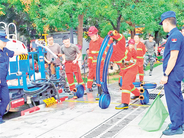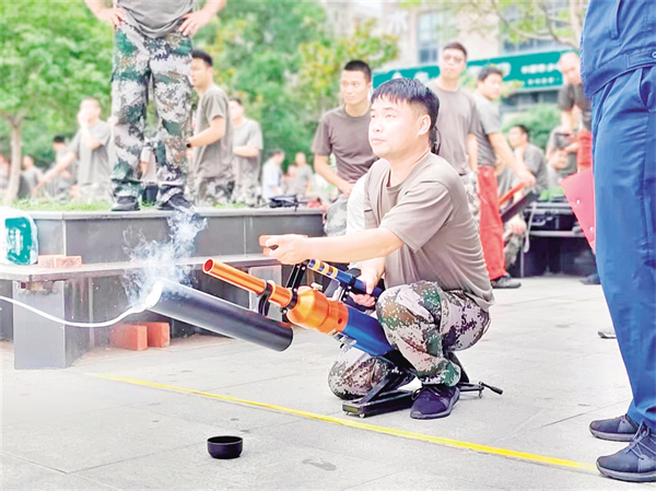 邱凱介紹,該鎮(zhèn)應(yīng)急救援隊(duì)由鎮(zhèn)級(jí)救援隊(duì)、15個(gè)村級(jí)救援分隊(duì)和水上應(yīng)急救援隊(duì)組成,共17支隊(duì)伍278人?!盀榱诉@次比武,后柳鎮(zhèn)收到通知后就積極籌備。兩個(gè)月里,參賽隊(duì)員除了到縣消防救援大隊(duì)接受專業(yè)培訓(xùn)外,平時(shí)也堅(jiān)持每周訓(xùn)練?!鼻駝P指著場邊的灑水車說,“這輛灑水車是鎮(zhèn)上自己改造的,不僅成本低,也更適合鎮(zhèn)情實(shí)際,五層樓以上的救援也能覆蓋。?