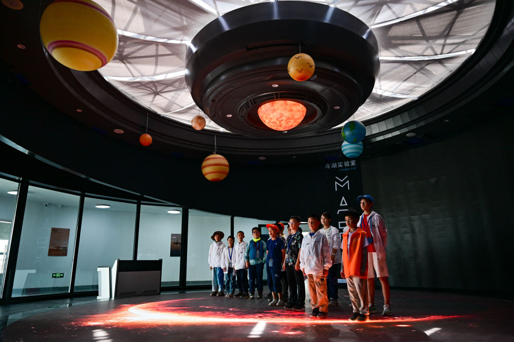 2025年7月29日,參加暑期研學(xué)的小朋友在青海省海西蒙古族藏族自治州冷湖鎮(zhèn)“冷湖實(shí)驗(yàn)室”學(xué)習(xí)天文知識(shí)。冷湖鎮(zhèn)曾是因石油而興、又因油盡而沉寂的工業(yè)遺址小鎮(zhèn)。然而,得天獨(dú)厚的地理?xiàng)l件,讓冷湖鎮(zhèn)成為理想的觀星地。近年來,當(dāng)?shù)匕l(fā)展科幻特色文旅,讓戈壁小鎮(zhèn)煥發(fā)新的生機(jī)。冷湖天文觀測基地引進(jìn)十余家科研單位的數(shù)十臺(tái)望遠(yuǎn)鏡,依托天文資源和戈壁奇景,打造火星實(shí)驗(yàn)室、黑獨(dú)山等“出圈”地標(biāo)。連續(xù)舉辦多屆的“冷湖科幻文學(xué)獎(jiǎng)”,更讓這片土地成為科幻創(chuàng)作的新高地。冷湖鎮(zhèn)以科幻點(diǎn)亮文旅新場景,也為中國西北工業(yè)小鎮(zhèn)的轉(zhuǎn)型探索出一條充滿想象力的新路徑。