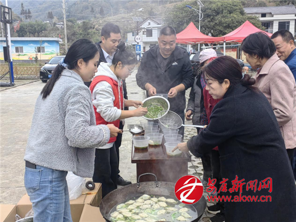 在廣場邊的臨時爐灶上,村“四支隊伍”人員分工協(xié)作,一起為老人們包著餃子。當(dāng)熱氣騰騰的餃子端上桌,老人們的臉上洋溢著幸福笑容。餐后的政策宣講環(huán)節(jié)干貨滿滿,村工作人員用通俗語言講解城鄉(xiāng)合作醫(yī)療收繳標(biāo)準(zhǔn)與報銷流程,結(jié)合老年群體常見病種舉例說明,現(xiàn)場為3位老人完成繳費(fèi)登記。