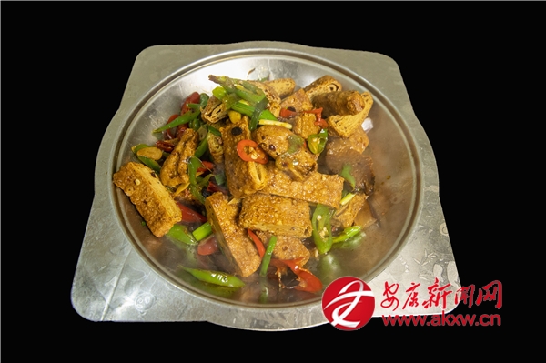 2011年,王鵬以糧食巷自己的住房為經(jīng)營場所注冊了寧陜縣菜根香私房菜菜館。同年,他又注冊成立了菜根香餐飲文化有限公司,致力于推廣地方餐飲文化。這里也是王鵬做高端菜品創(chuàng)作的起點。以土雞、山藥、蕓豆為主料的“瓦罐雞”經(jīng)過小火慢燉,雞肉軟嫩,湯清味鮮?!案慑伇ざ垢笔嵌垢すu蛋液在高溫下油炸后配以臘肉炒制調味后放入干鍋中,豆腐皮外形就有了豹紋,匠心制作的菜品咸香、豆香、復合香,自是山珍中難得的美味。10多年過去,這道菜仍然是大眾點評中的熱選菜品。