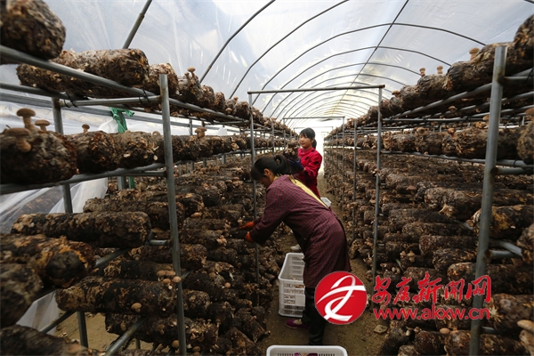 △ 茅坪鎮(zhèn)茅坪社區(qū)大力發(fā)展木耳、香菇等食用菌特色產(chǎn)業(yè),讓村民們?cè)诩议T(mén)口增收。
