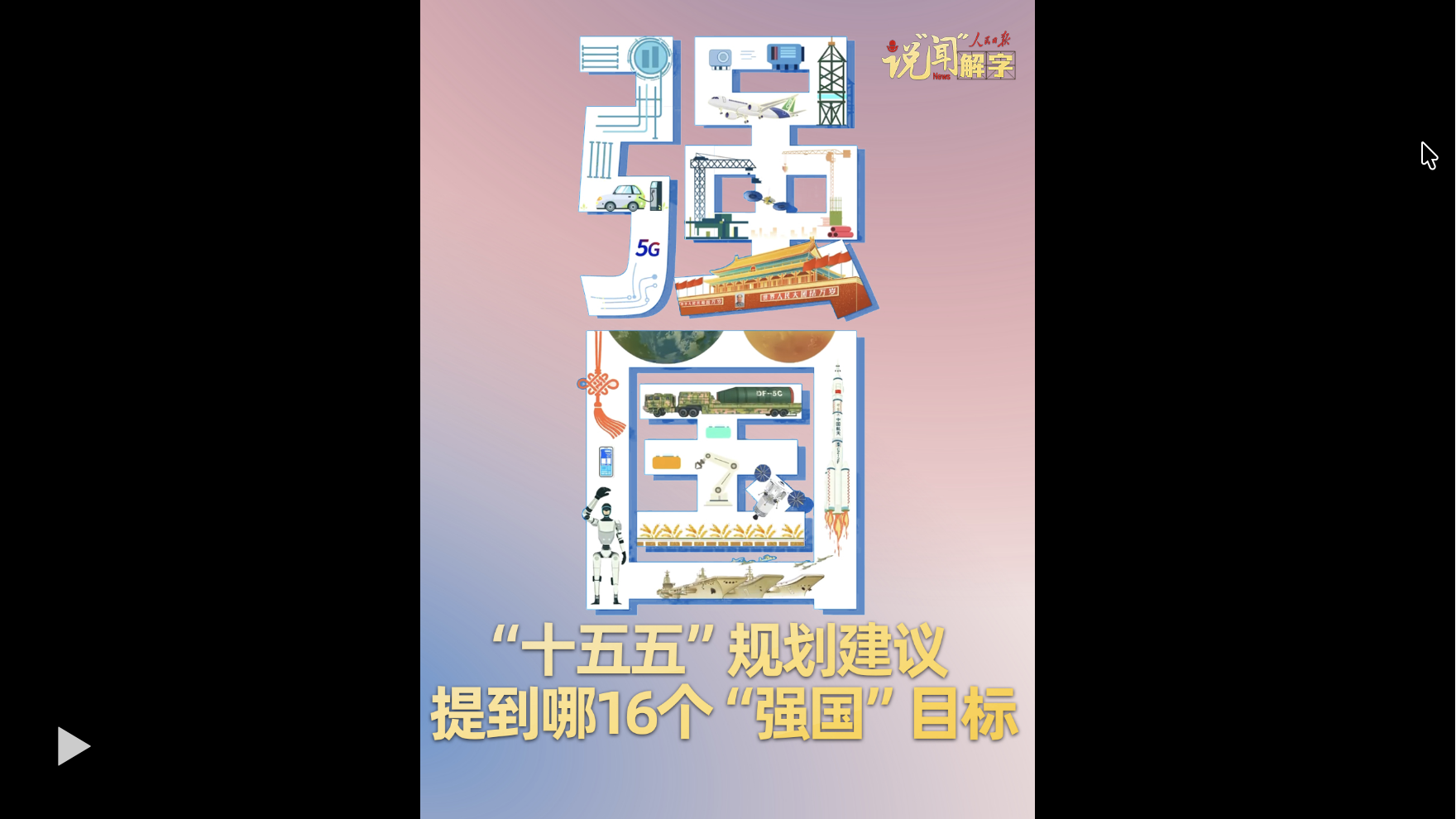 “十五五”規(guī)劃建議中提到了16個(gè)“強(qiáng)國(guó)”目標(biāo)。規(guī)劃建議聚焦哪些實(shí)際問(wèn)題?我們將在哪些地方發(fā)力?一支視頻讀懂。