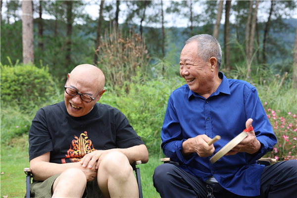 音樂人李杰(左)和紫陽民歌省級傳承人何耀信(右)