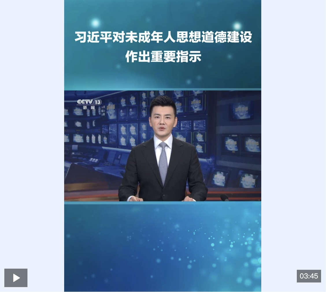 近日,習(xí)近平總書(shū)記對(duì)未成年人思想道德建設(shè)作出重要指示,要求落實(shí)立德樹(shù)人根本任務(wù),堅(jiān)持把未成年人思想道德建設(shè)作為戰(zhàn)略性、基礎(chǔ)性工作來(lái)抓。(詳情>>)