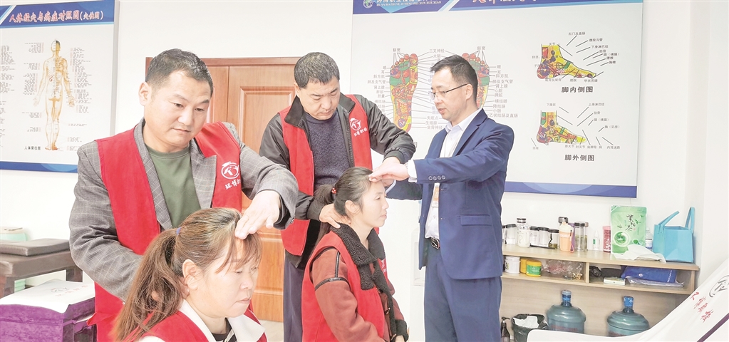 為確保每位參訓(xùn)學(xué)員聽(tīng)得懂、看得清、學(xué)得會(huì),周元富不厭其煩地將每一套動(dòng)作分解為通俗易懂的語(yǔ)言,配合緩慢而精準(zhǔn)的示范,反復(fù)講解,直至所有人掌握要領(lǐng)。對(duì)于擁有15年從業(yè)經(jīng)驗(yàn)的周元富而言,相比于保健按摩技能傳授,參訓(xùn)學(xué)員的心理建設(shè)需要投入更多心力。許多參訓(xùn)學(xué)員初來(lái)時(shí)思想負(fù)擔(dān)重,情緒波動(dòng)大,既擔(dān)心學(xué)不會(huì)技能,更憂(yōu)慮未來(lái)的就業(yè)與收入。面對(duì)這些特殊的教學(xué)對(duì)象,周元富一度感到棘手。經(jīng)過(guò)3年的實(shí)踐摸索,他將豐富的一線經(jīng)驗(yàn)與耐心、熱情相結(jié)合,逐步找到溝通與激勵(lì)的方法,幫助參訓(xùn)學(xué)員卸下包袱,樹(shù)立信心,從容面對(duì)學(xué)習(xí)與未來(lái)的職業(yè)之路。