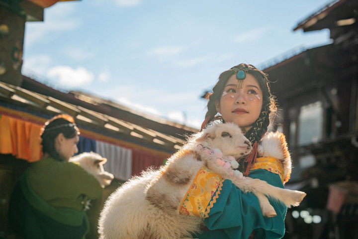 ? ? ? ? ? ? ? ? ? ? ? ? ? ? ? ? 2023年3月8日,游客在迪慶州香格里拉市獨(dú)克宗古城拍照留念。