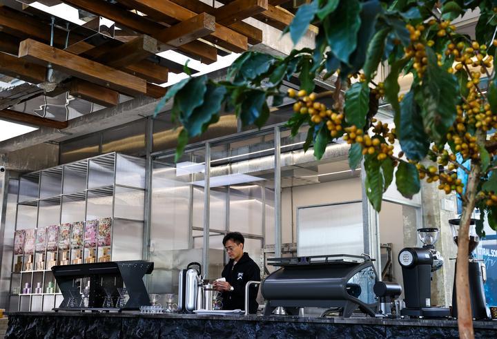 2025年12月10日,旅居云南的韓君瑋在位于昆明的南來(lái)盛咖啡店內(nèi)制作咖啡。韓君瑋自清華大學(xué)畢業(yè)后,已在咖啡行業(yè)耕耘十余年。2024年,他受聘成為云南一家老字號(hào)咖啡品牌的品牌總顧問(wèn),從此投身到云南咖啡的產(chǎn)品研發(fā)和品牌推廣工作中。一年多來(lái),他每月都會(huì)來(lái)到昆明,短則幾天,長(zhǎng)則數(shù)周,開(kāi)啟了一種“半旅居、半工作”的生活模式。“云南風(fēng)景優(yōu)美、氣候宜人,我很享受這樣的狀態(tài)?!表n君瑋說(shuō)。