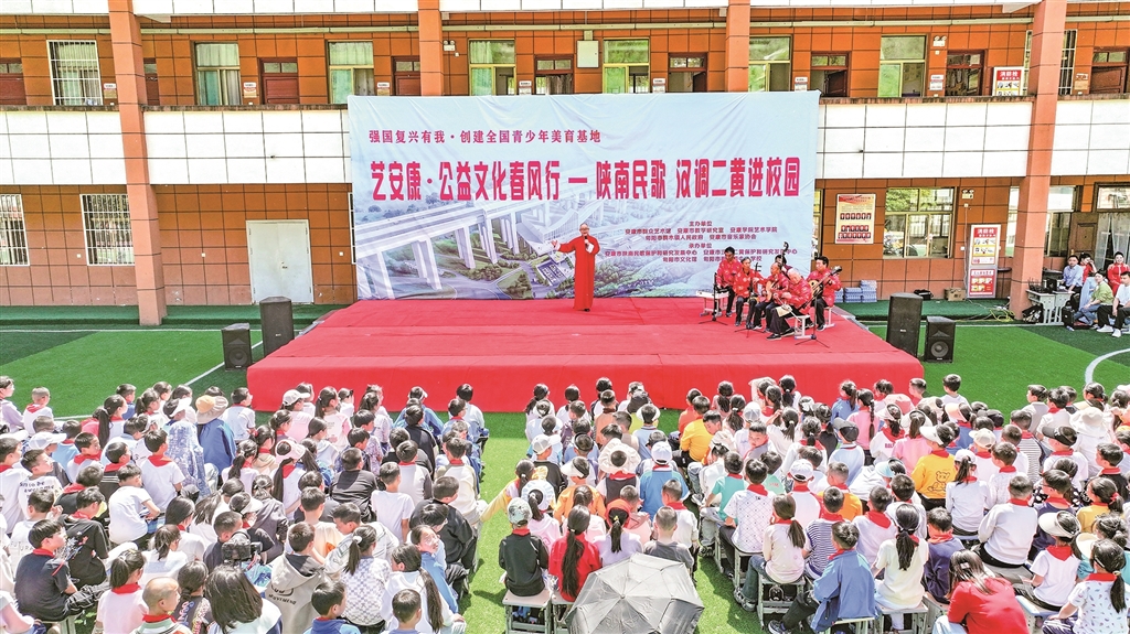 線上課程補足了師資缺口,線下的實踐體驗與成果展示則進一步鞏固了美育成效。該館全年開展版畫、民歌、剪紙等專項培訓(xùn)48場,服務(wù)青少年8000余人次;舉辦“兒童版畫走基層”展覽12場,培訓(xùn)學(xué)生1200余人,24件學(xué)生作品入選全國少兒版畫雙年展;開展“非遺進校園”陜南民歌、漢調(diào)二黃等展演培訓(xùn)30余場,成立非遺社團10個,發(fā)展學(xué)員400余人。在漢調(diào)二黃進校園活動中,安康中學(xué)教育集團初中部的學(xué)生們身著傳統(tǒng)戲服,演繹《太君辭朝》選段,一招一式有板有眼,韻味十足。“為了排好這個節(jié)目,同學(xué)們利用課余時間刻苦訓(xùn)練了3個月?!敝笇?dǎo)老師許世蓮說,通過學(xué)習(xí)戲曲,學(xué)生們不僅提升了藝術(shù)素養(yǎng),更領(lǐng)悟到了其中蘊含的家國情懷和民族精神。