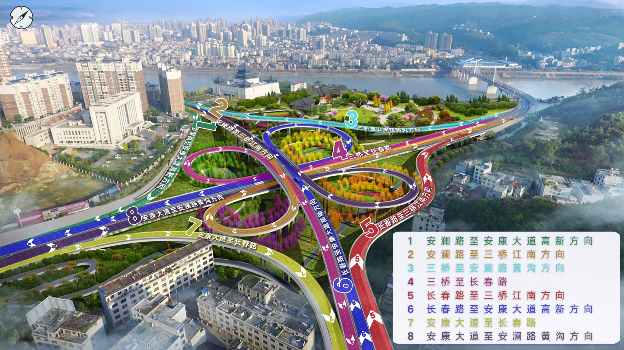作為安康市中心城區(qū)首座、陜南地區(qū)在建規(guī)模最大的苜蓿葉式全互通立交,七里溝立交東接安瀾路,西連長春路,南通西津漢江大橋,北達安康大道,將成為連接高新區(qū)、長春片區(qū)、黃溝片區(qū)及江南城區(qū)的重要交通樞紐。項目通車后,將有效分流過境交通,顯著緩解七里溝區(qū)域的交通擁堵壓力。