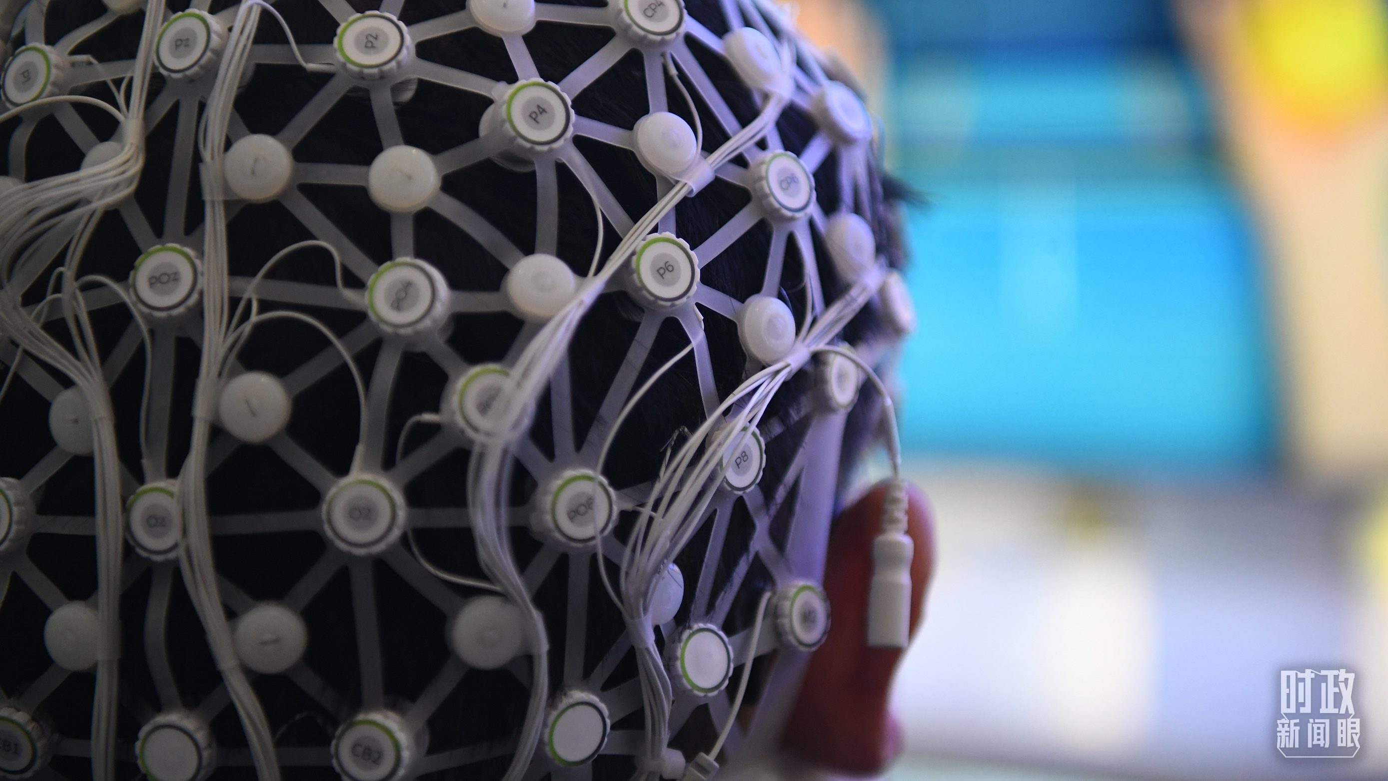 △2026年1月24日,安徽省腦機接口創(chuàng)新發(fā)展大會現(xiàn)場一位穿戴腦機接口設備的體驗者。(圖/視覺中國)