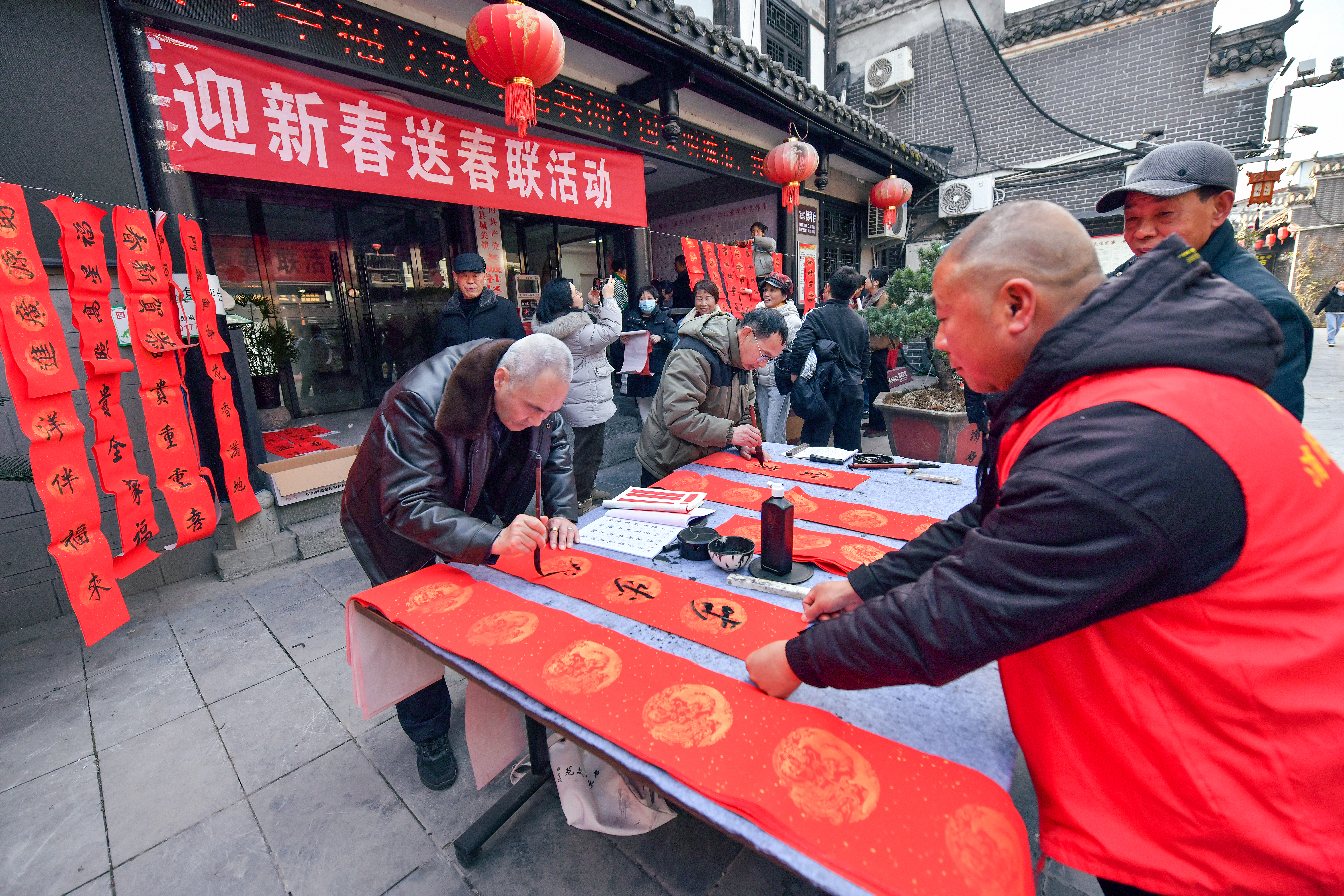 2月2日,石泉縣城關(guān)鎮(zhèn)老城社區(qū)新時(shí)代文明實(shí)踐站組織開(kāi)展義寫春聯(lián)活動(dòng)。書(shū)法愛(ài)好者現(xiàn)場(chǎng)揮毫,為居民送上新春祝福?;顒?dòng)共送出春聯(lián)200余副。董長(zhǎng)松 攝