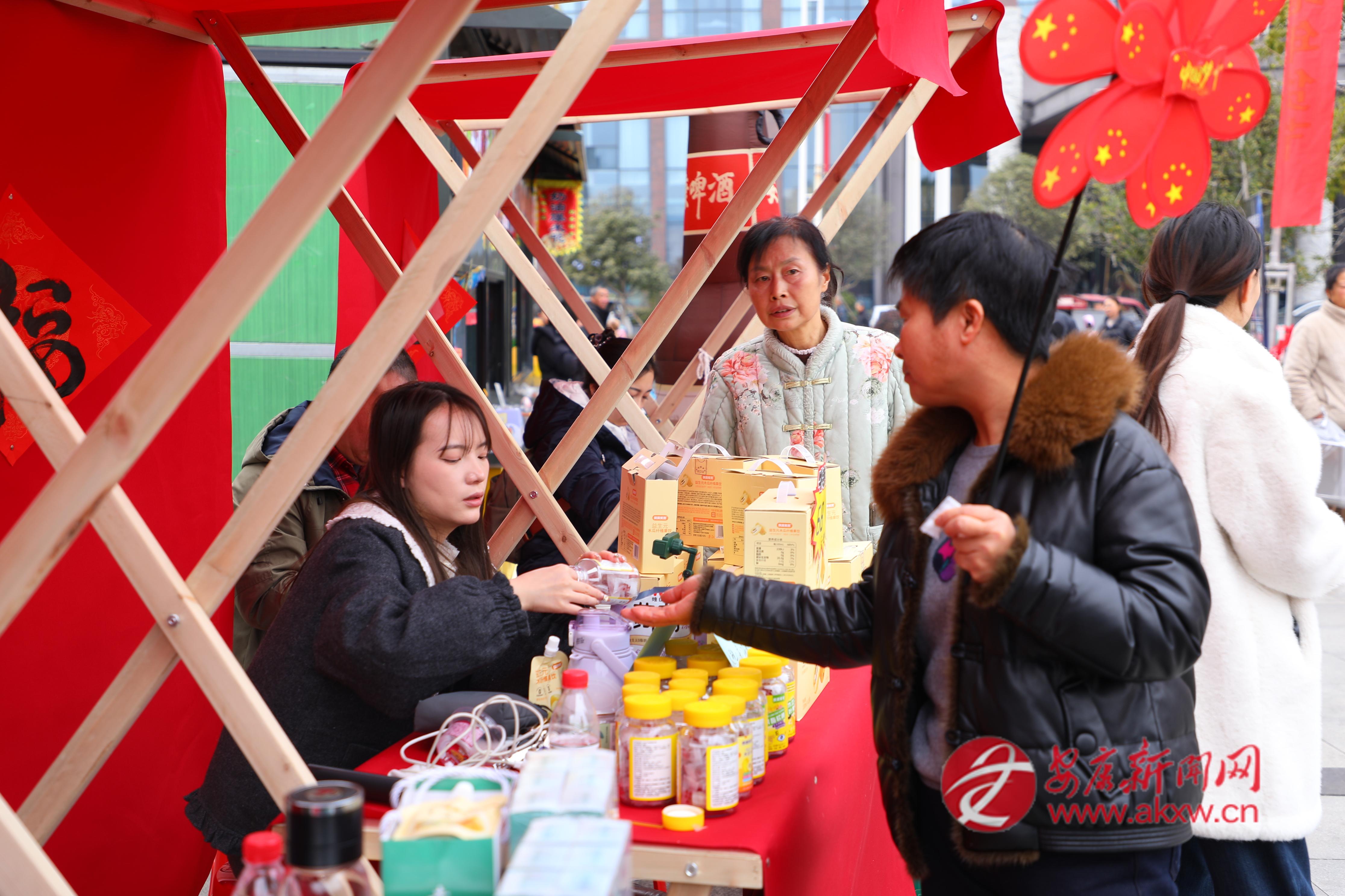 舞臺之上好戲連臺,集市之中更是熱火朝天。年貨展銷區(qū)內攤位林立、人潮涌動,20余家企業(yè)帶來的安康富硒茶、紅薯粉條、木瓜飲、土蜂蜜、黃連牙膏等安康特色產品琳瑯滿目,讓人目不暇接?!奥犃藬傊髦v解茶山生態(tài)和制茶工藝,感覺買得特別踏實,帶回去自己喝或當作新年伴手禮都合適,能實實在在支持本地茶農,這年貨買得暖心又有意義。”市民廖先生提著剛購入的茶葉笑著說。
