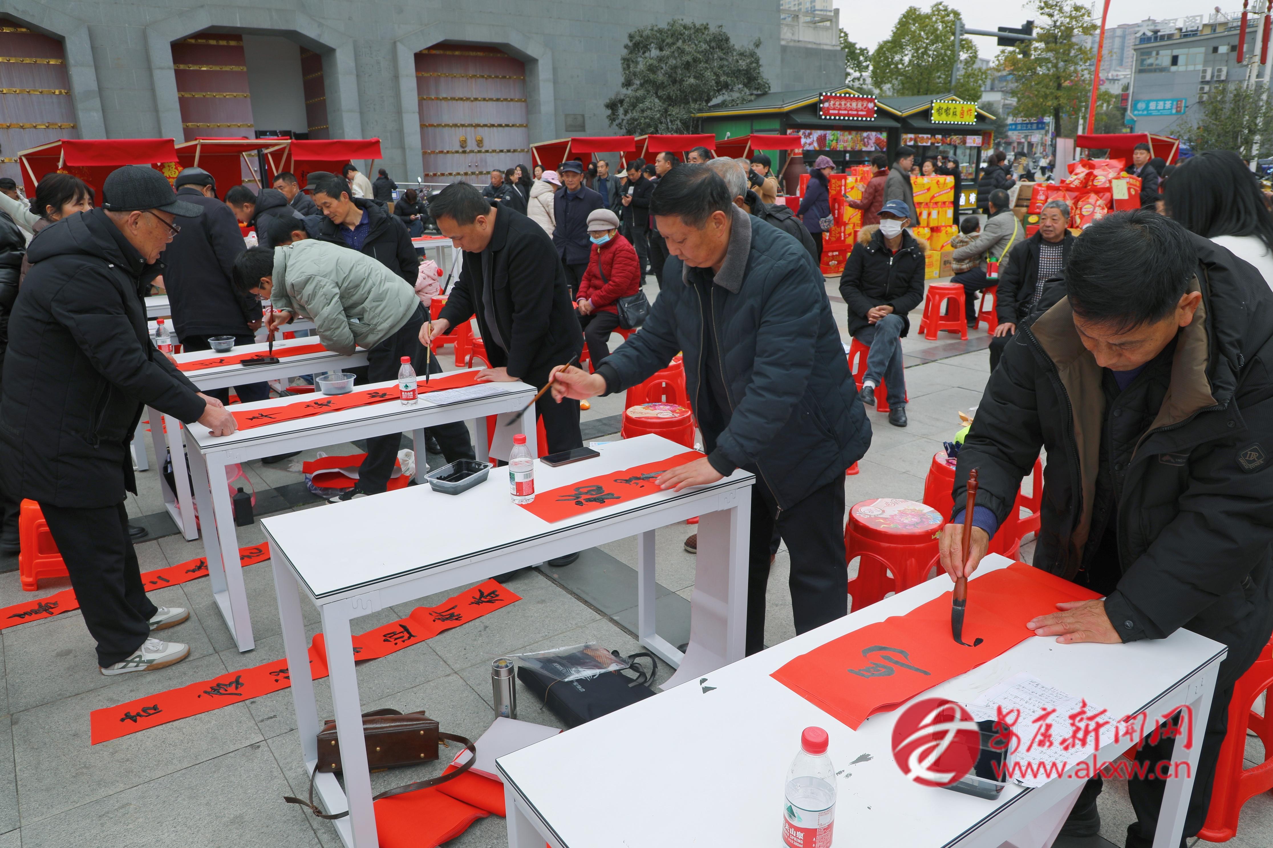 活動開場,鏗鏘的舞獅表演點燃全場熱情,漢調二黃盡顯秦巴韻味,嘹亮的歌唱與精妙的川劇變臉輪番上演,獨具特色的文藝演出贏得市民群眾陣陣掌聲,其間的抽獎活動與趣味娛樂環(huán)節(jié),吸引市民沉浸式參與其中,更是將節(jié)日的歡樂氛圍推向高潮。另一邊,市文化產業(yè)協會的書法家們揮毫潑墨,一副副喜慶的大紅春聯、一張張吉祥的福字帶著墨香送到群眾手中。