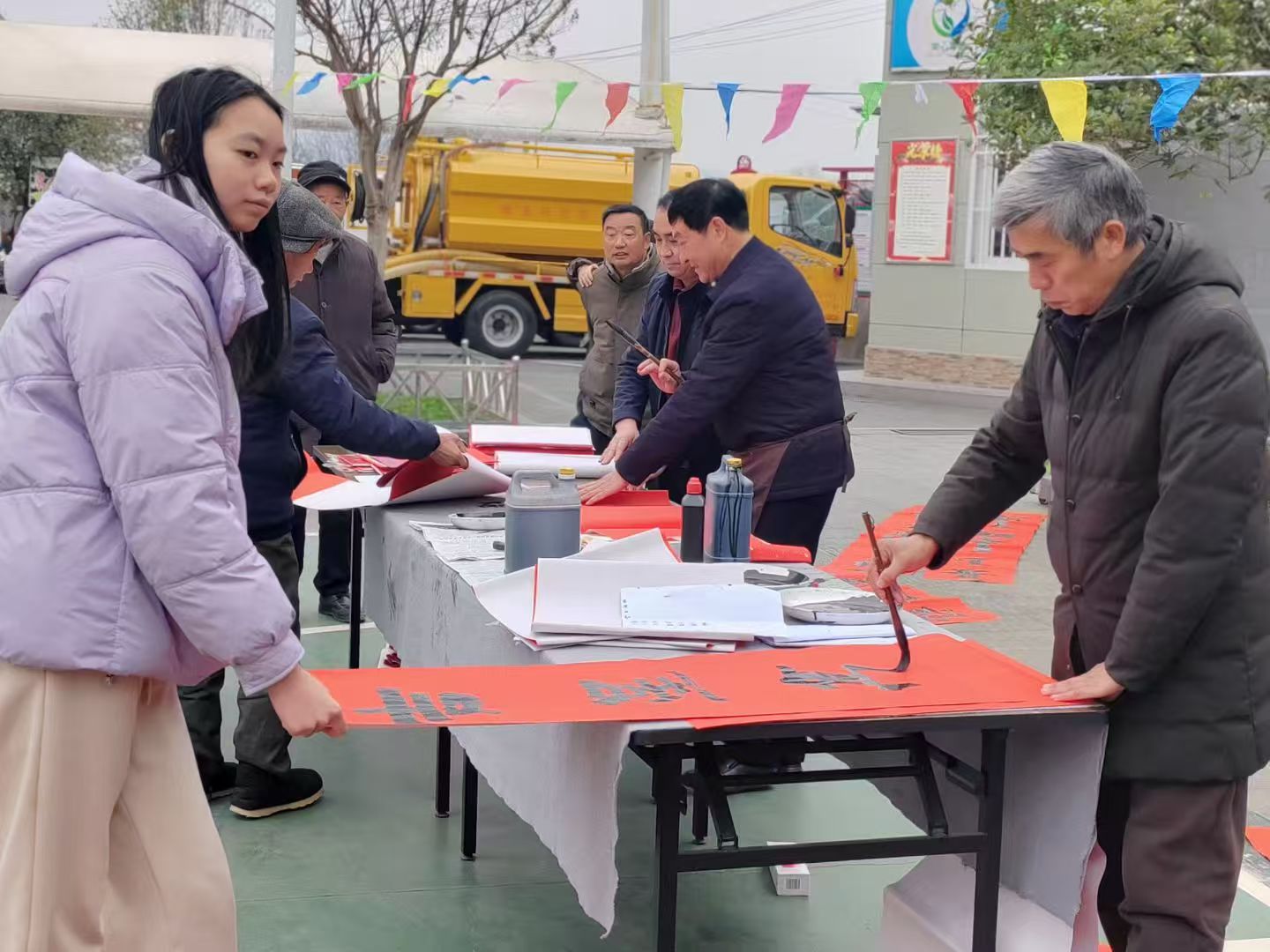 “村晚”現(xiàn)場(chǎng)還設(shè)置了新春惠民服務(wù)區(qū),成為一道溫暖的風(fēng)景線。鎮(zhèn)文化站邀請(qǐng)本土?xí)椰F(xiàn)場(chǎng)揮毫潑墨,免費(fèi)為村民書(shū)寫(xiě)春聯(lián)和福字,墨香四溢,紅紙映春,村民們有序排隊(duì)領(lǐng)取,把新春祝福帶回家。鄉(xiāng)村年貨展銷(xiāo)區(qū)人氣高漲,漢陰富硒糧油、土蜂蜜、臘肉、豆腐干等特色農(nóng)產(chǎn)品整齊擺放,駐村第一書(shū)記、村“兩委”干部化身“推銷(xiāo)員”,熱情推介本土好物,既方便村民置辦年貨,又拓寬農(nóng)產(chǎn)品銷(xiāo)售渠道,讓“村晚”既有文化味,更有煙火氣與增收實(shí)效。