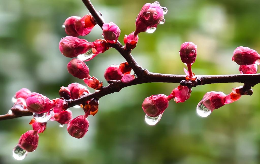 這是3月1日拍攝的河南省洛陽(yáng)市街頭花苞上的露珠。一場(chǎng)春雨過(guò)后,晶瑩剔透的雨珠綴滿(mǎn)枝頭,勾勒出別樣春日景致。新華社發(fā)(高山岳攝)