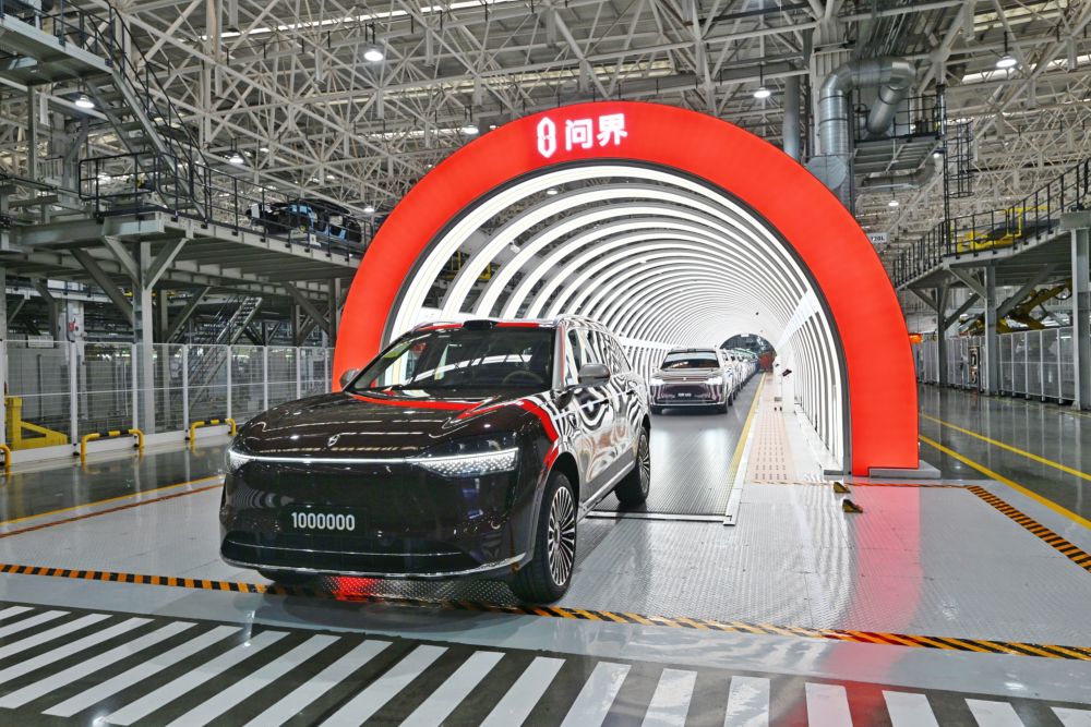 全國兩會前夕,重慶兩江新區(qū)賽力斯超級工廠內,第100萬輛整車駛下產(chǎn)線。