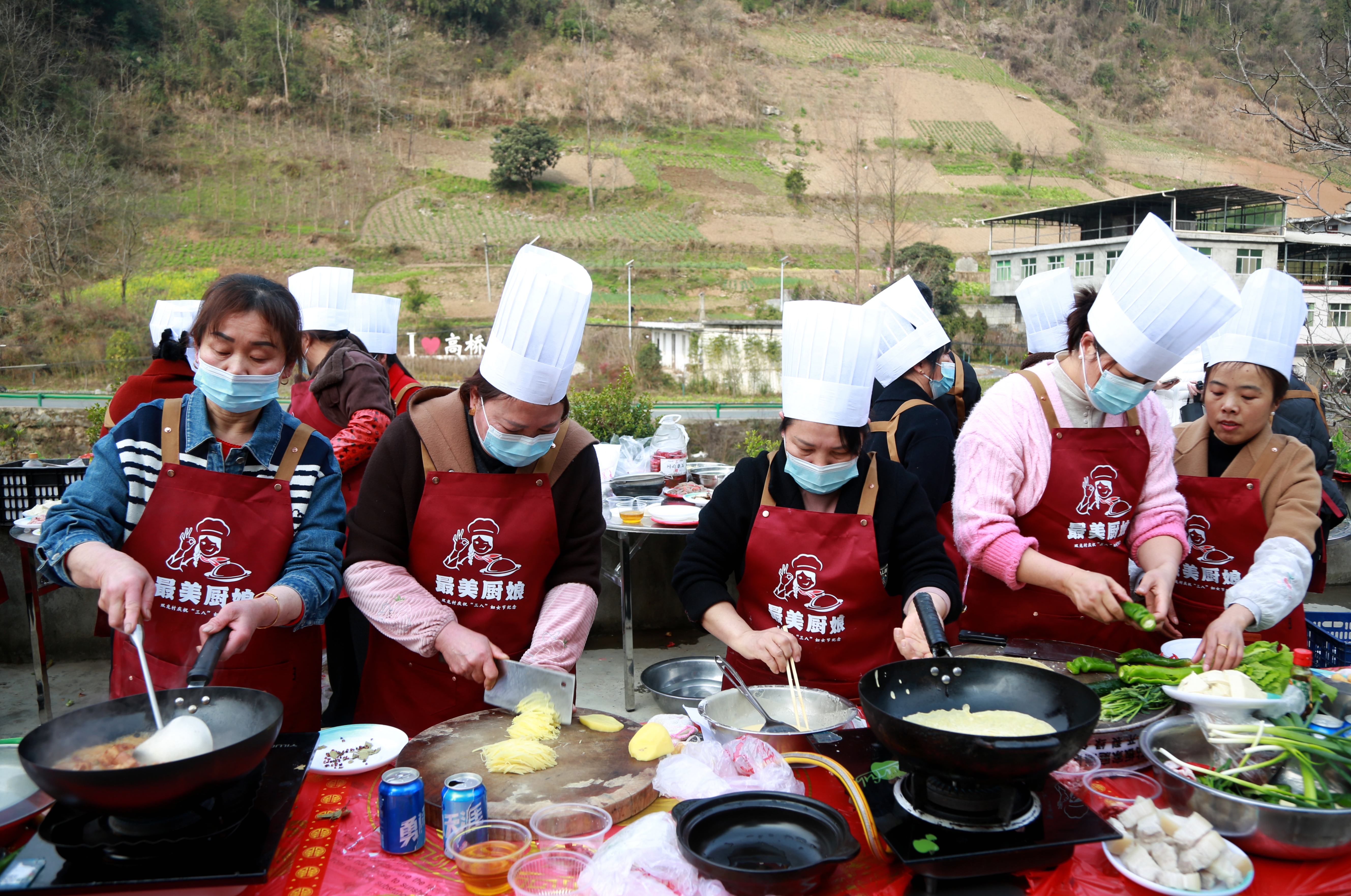 紫陽(yáng)縣高橋鎮(zhèn)雙龍村舉行最美廚娘爭(zhēng)霸賽,歡慶“三八”國(guó)際勞動(dòng)?jì)D女節(jié)。李謝軍 攝