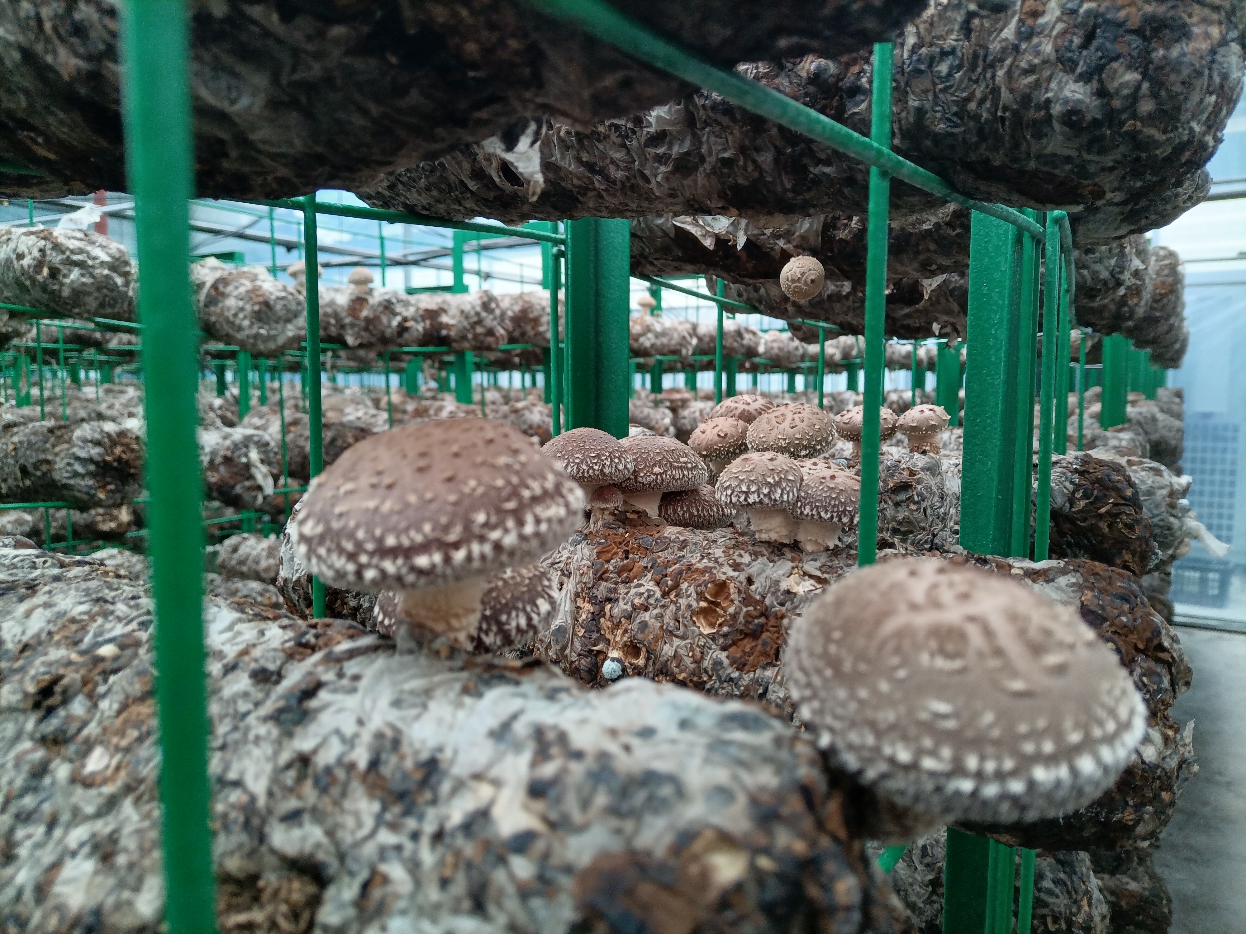 △ 喜河鎮(zhèn)晨光村食用菌標(biāo)準(zhǔn)廠房?jī)?nèi)香菇長勢(shì)喜人