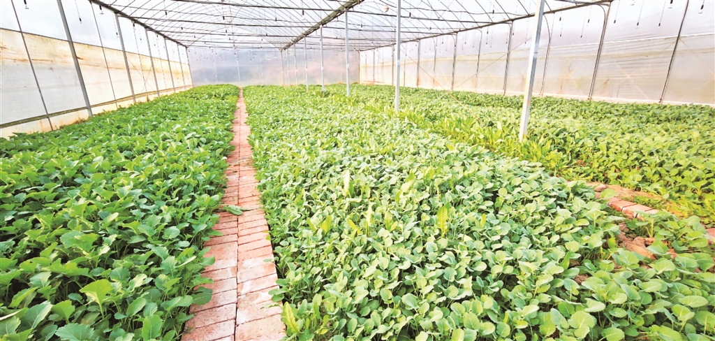 合作社大棚內一排排硒滋圓二號油菜薹長勢喜人