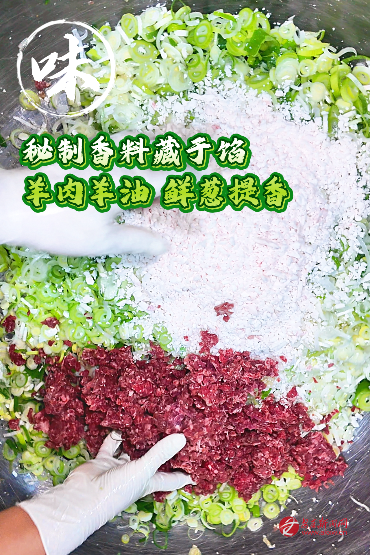 再是做油酥。抓一把面粉,擱碗里,加鹽、五香粉,用滾沸的熟油潑進(jìn)去,筷子急急地?cái)?。那面在油里嗞嗞地響,漸漸融成濃稠的一團(tuán)。這油酥,是餅子起層的秘密。還有餡料。羊肉選用本地的羊,肉切成小小的丁。太肥了不行,須得瘦肉多一些,得加些羊脂丁,那樣煎出來(lái)才潤(rùn),才有汁水。蔥花要多,要本地的蔥,切得碎碎的,拌上鹽、花椒粉、五香粉。有的還加焙香的苜蓿末,黃黃的,有股子清野的氣味。