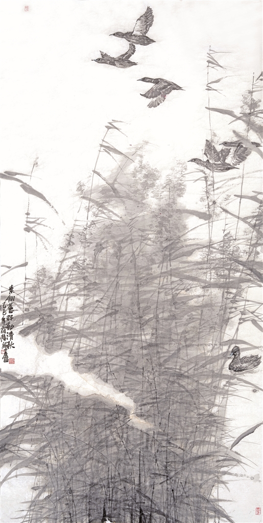郭線廬:我一直認(rèn)為,中國(guó)畫(huà)的生命力在于其不斷地自我革新。對(duì)于傳統(tǒng)筆墨的研究,我并非僅僅停留在技法的臨摹與復(fù)現(xiàn),而是深入探究其背后所承載的哲學(xué)思想、美學(xué)觀念和人文精神。我嘗試將一些現(xiàn)代藝術(shù)的構(gòu)成原理、色彩理論,甚至是抽象觀念,巧妙地融入傳統(tǒng)的筆墨語(yǔ)匯中。例如,在構(gòu)圖上,我可能會(huì)打破傳統(tǒng)中國(guó)畫(huà)的固定模式,引入更具現(xiàn)代感的視角和空間關(guān)系。在用墨上,我則追求更加豐富多變的層次和肌理,探索墨的“黑白關(guān)系”之外的“灰度”和“透明感”。