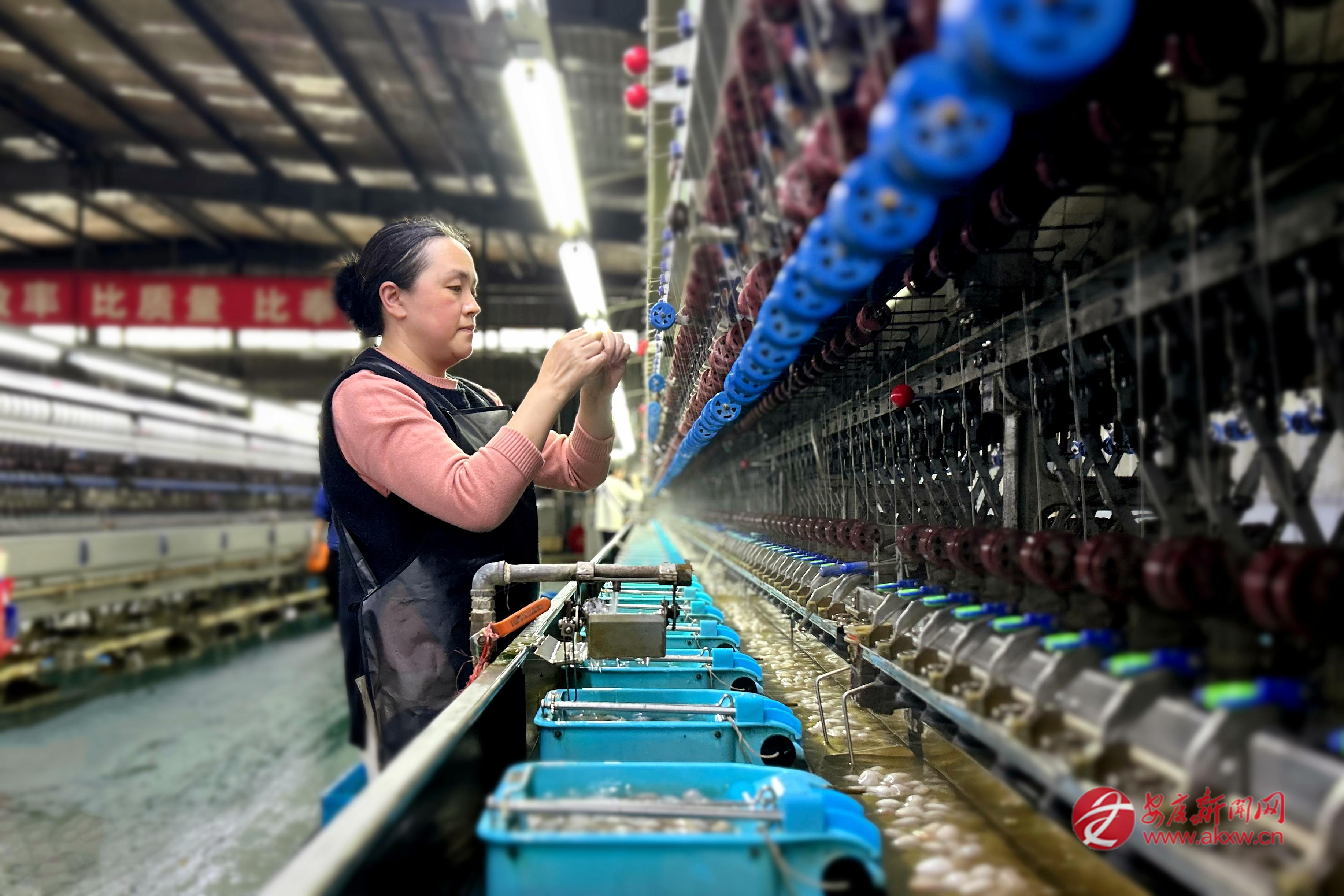 “今年國內(nèi)高端家紡市場需求旺盛,訂單一直很充足?!逼髽I(yè)負責(zé)人孫浩勇介紹,依托本地優(yōu)質(zhì)蠶繭,企業(yè)滿負荷生產(chǎn)。同時,通過“企業(yè)+合作社+農(nóng)戶”利益聯(lián)結(jié)機制,天成絲業(yè)與數(shù)千戶蠶農(nóng)簽訂保底收購協(xié)議,提供全流程服務(wù),實現(xiàn)企業(yè)增效、蠶農(nóng)增收。