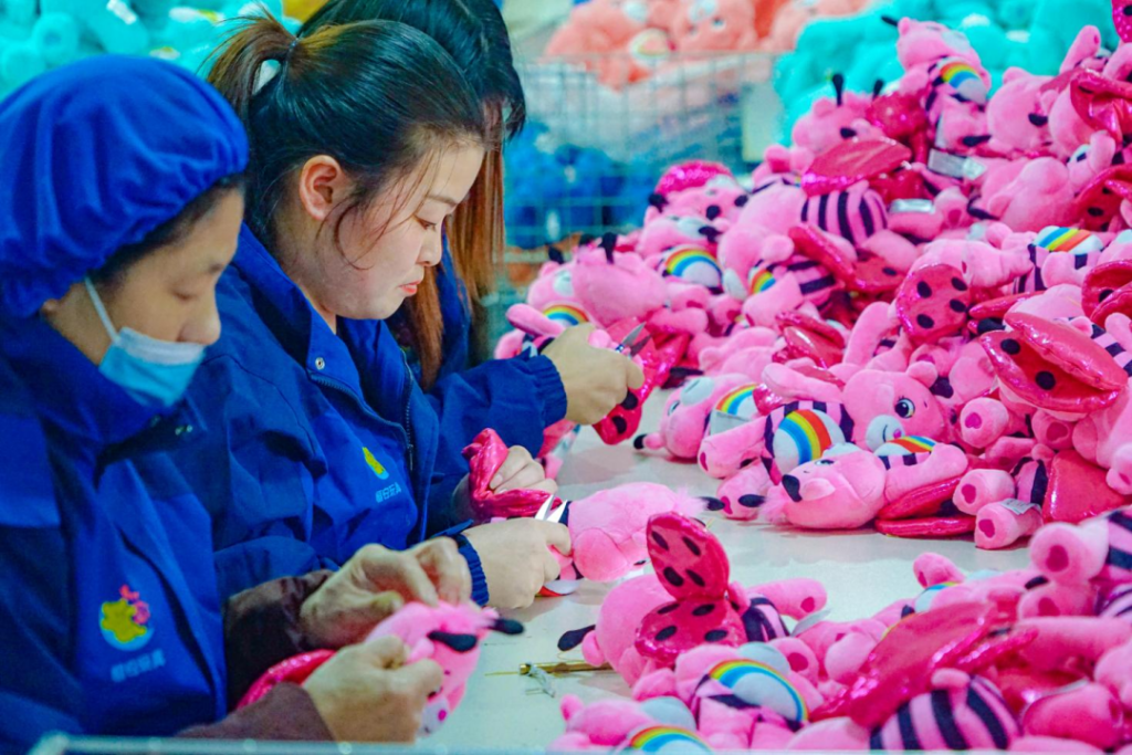 毛絨玩具是安康特色產業(yè)體系中的另一個重要代表。很多人可能不知道,目前安康已發(fā)展成為全國第四大毛絨玩具生產基地,獲評“中國毛絨玩具產業(yè)新都”。截至2025年底,安康全市累計建成毛絨玩具和紡織企業(yè)811家(點),吸納就業(yè)群眾超2.2萬人,實現(xiàn)年產值100.21億元。企業(yè)日產能達到150萬只,產品出口全球80多個國家和地區(qū)。