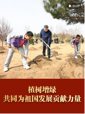 3月30日上午,習(xí)近平總書(shū)記在參加首都義務(wù)植樹(shù)活動(dòng)時(shí)強(qiáng)調(diào),良好生態(tài)人人共享,也需要合力共建。要組織動(dòng)員全社會(huì)廣泛參與植樹(shù)造林,為山川大地增添錦繡,讓中國(guó)式現(xiàn)代化的底色更加亮麗。