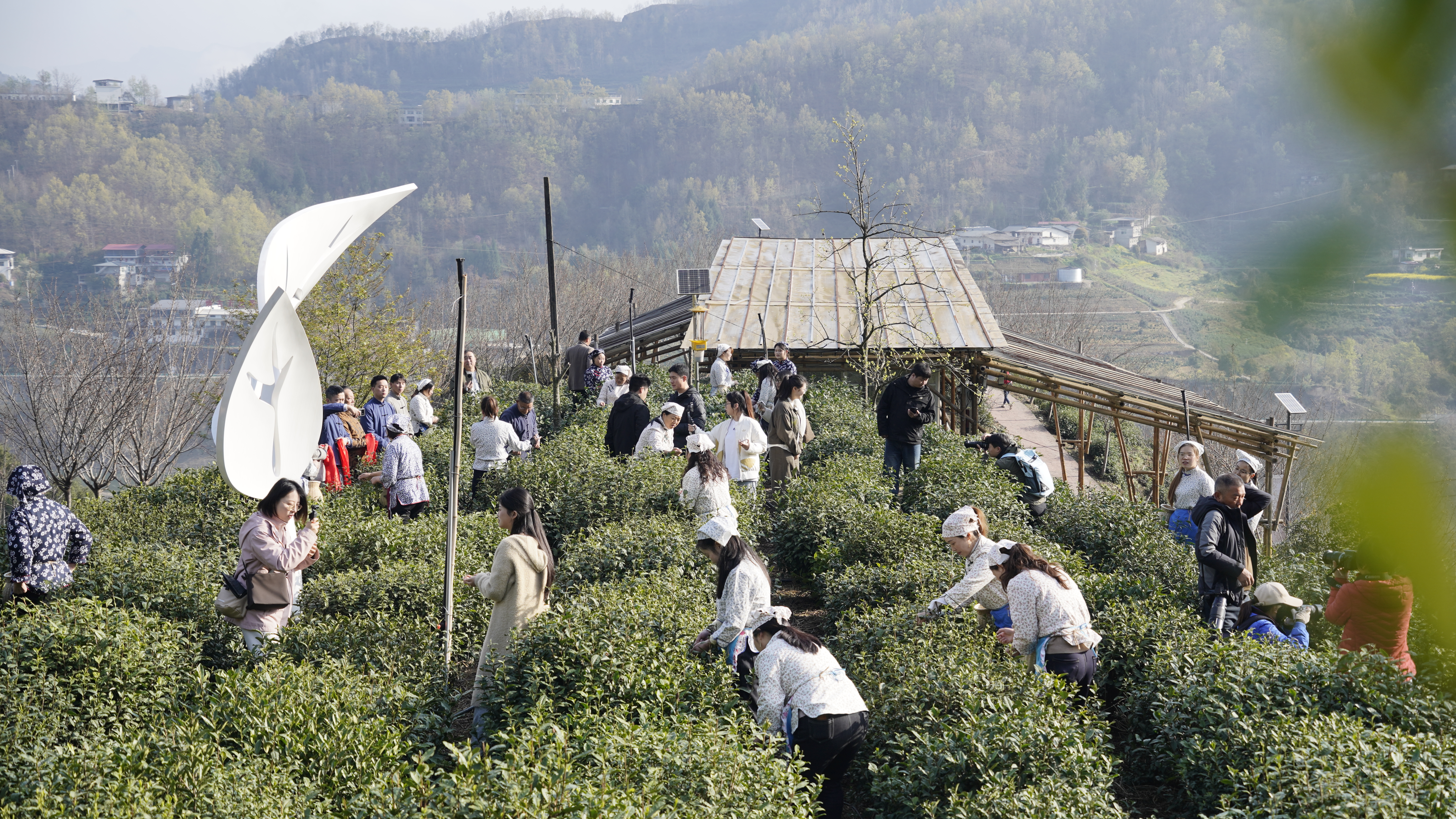 新芽初綻、茶香彌漫,隨著春茶陸續(xù)開園,茶鄉(xiāng)紫陽處處熱鬧非凡,村民們?cè)诓刹柚噙€利用手機(jī)在茶園里直播,沉浸式帶網(wǎng)友云游茶山,看采茶、講茶事、介紹家鄉(xiāng)茶產(chǎn)業(yè),引得線上互動(dòng)連連。毛潤 攝